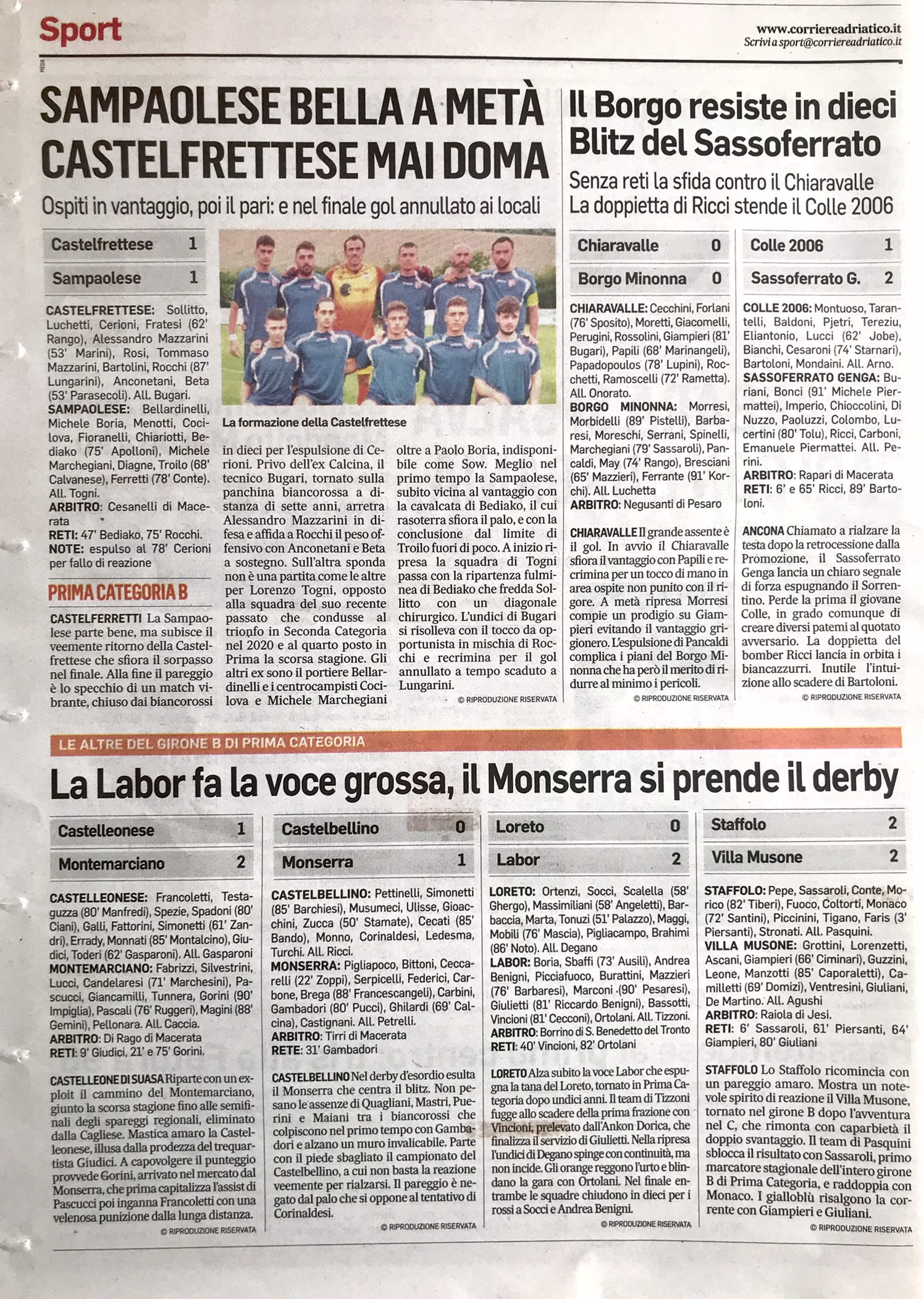 SAMPAOLESE BELLA A META'. CASTELFRETTESE MAI DOMA Cosi titola oggi il Corriere Adriatico Buona la prova dei ragazzi di mister Togni, che affrontava subito alla prima giornata, la sua ex squadra. Twitter